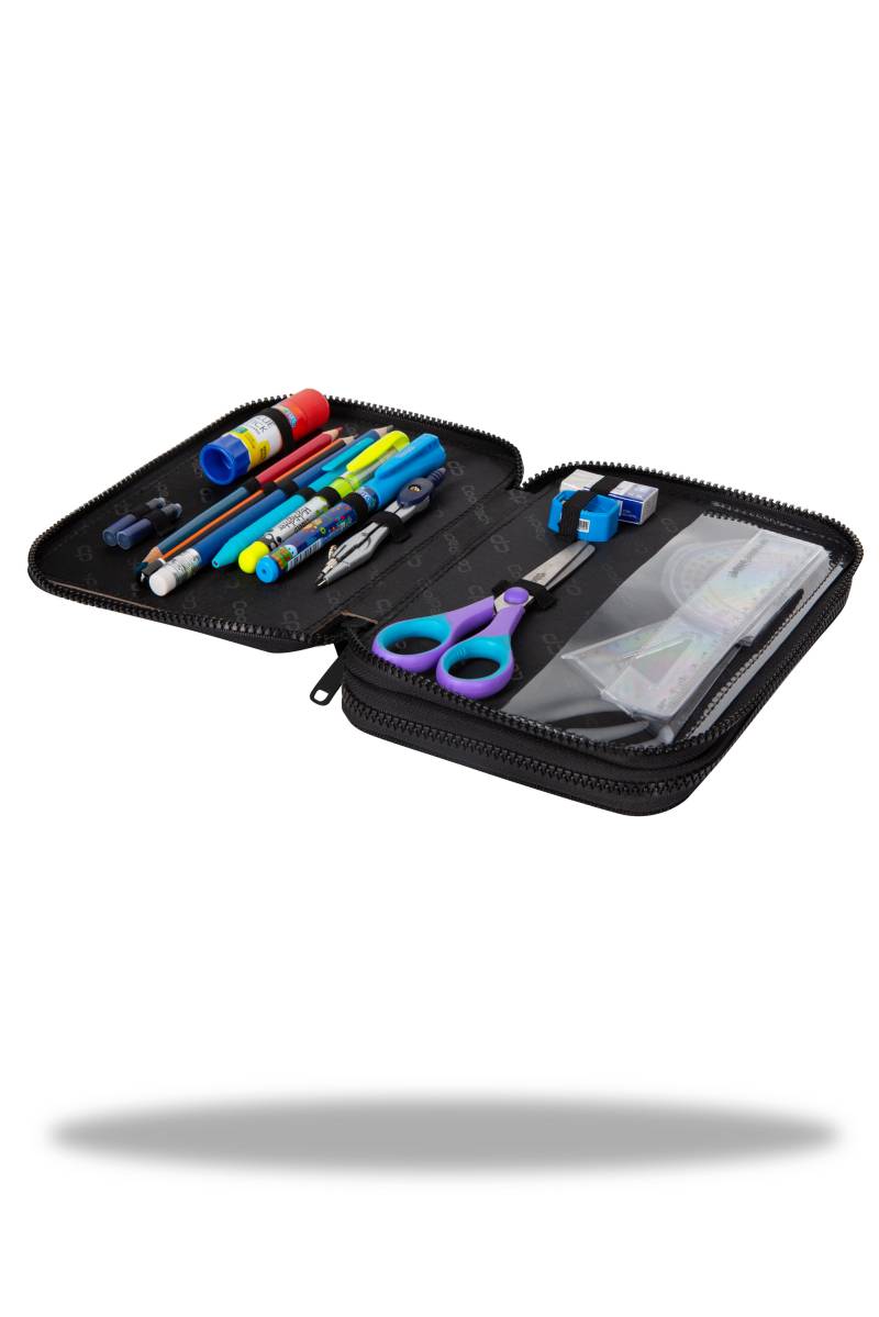 Dwukomorowy, usztywniany piórnik szkolny marki Coolpack, z wyposażeniem spełni każde oczekiwania, Doskonale sprawdzi się w szkole. Ciekawe wzory i nasycone kolory zachwycą najmłodszych i pozwolą na rozwijanie ich pasji.