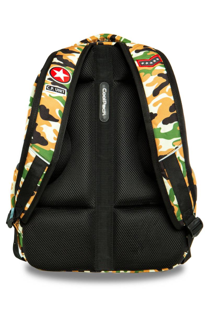 dla komfortu użytkowania plecak ma wzmocnione i wyprofilowane plecy pokryte siatką oraz wzmocniony spód,